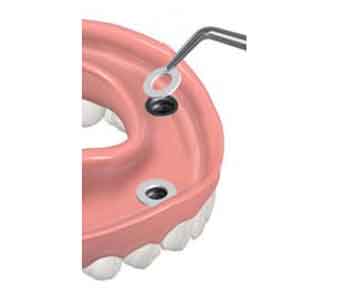インプラントが骨と結合したら、インプラントにロケーターという留め具を装着します。